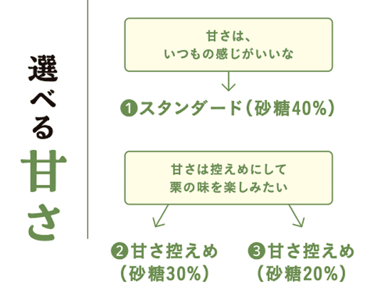 スタンダード/甘さ控えめ(砂糖30%)/甘さ控えめ(砂糖20%)