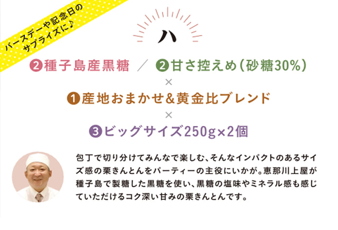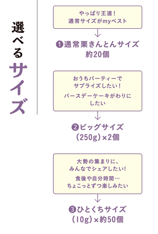 通常栗きんとんサイズ約20個/ビッグサイズ250g×2個/