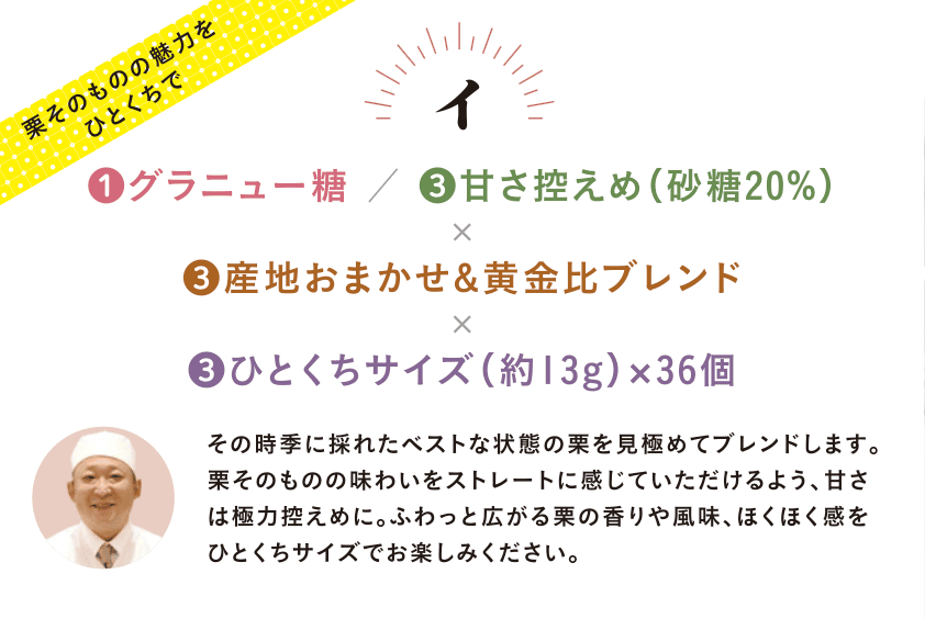 栗本来の風味が一粒の中にぎゅっと凝縮されます。