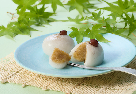 清らかな水と、空気を含んだきめ細やかな泡が醸し出すぷるんとした食感。独自開発した「泡沫(うたかた)生地」で、栗きんとんを優しく包み、すくった川の水に沿う、蛍の姿をうつしました。暖かくなってきたこの季節にぴったりののどごしのよい贈り物です。