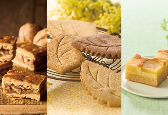 胡桃の贅沢な味わいのアンガディーネ「胡桃の散歩道」、栗の豊かな風味広がる「栗タルト」は、サイズや形状もより食べやすく工夫し個包装に。
