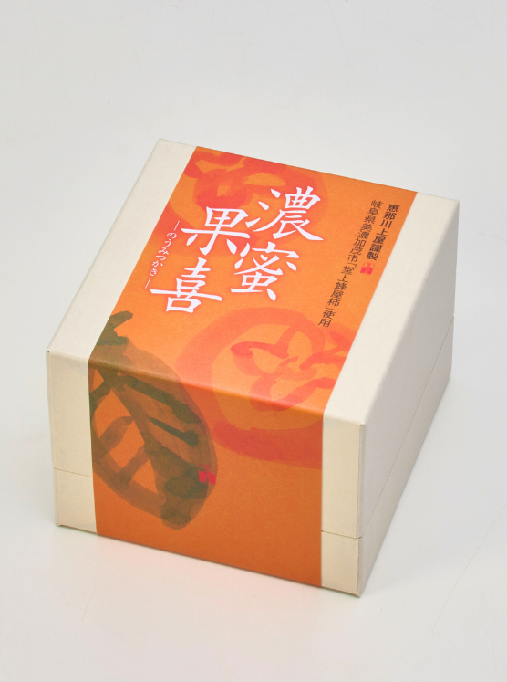 この柿に重ねるのは、恵那川上屋自慢の和栗と白餡を合わせた、なめらかなペースト。栗の深いコクとやさしい甘さが、柿の濃密さと重なり、濃厚な果実の甘みをお楽しみいただけます。