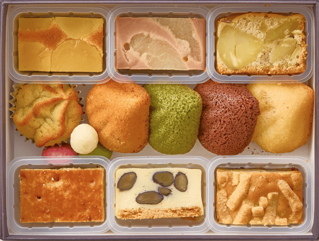 栗・チョコ・抹茶のマドレーヌ3種と新作「栗のフィナンシェ」。