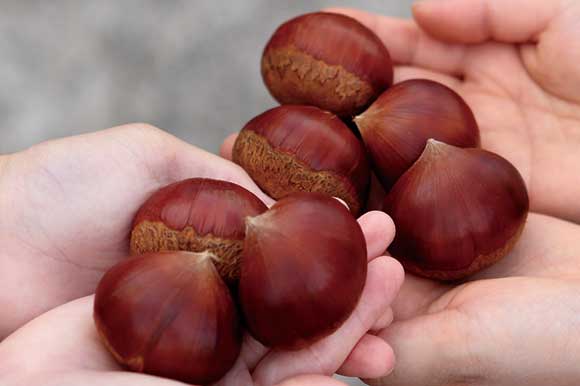 恵那山麓で土づくりからこだわって育てられている恵那栗。毎年好評をいただいている「恵那栗の渋皮煮」は、岐阜県発祥の品種「利平」の中でも大粒をさらに選りすぐり、種子島の粗糖を使った自家製シロップにじっくりと漬け込んでいます。