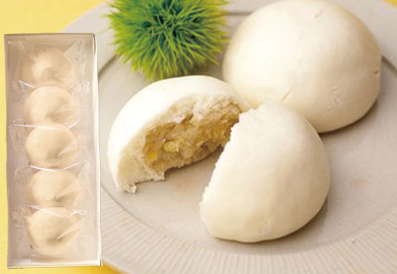 素朴な菓子ですが甘さ控えめで栗のおいしさをしっかりと感じていただける、おおすすめの一品です。電子レンジで加熱していつでもほかほかの栗まんじゅうをご家庭でどうぞ。