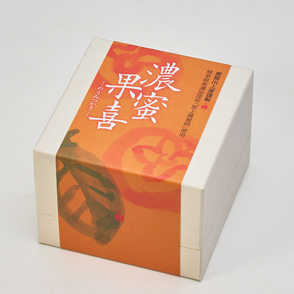 岐阜県美濃加茂市蜂屋町で千年以上の歴史を誇り、かつて朝廷や幕府にも献上された、「堂上蜂屋柿」。希少で大ぶりの干し柿を贅沢に使い、厳選した和栗と合わせました。美しい飴色のとろりとした果肉は焼き芋やジャムの糖度を上回るほど濃厚な甘さ。その柿を蜜に漬け込み、栗や白餡と合わせたペーストをミルフィーユ状に重ねました。岐阜県産柚子の香りや木の実の食感も加わった奥深い味わいをご堪能ください。5ミリほどにスライスしてティータイムやワインのおもとにも。