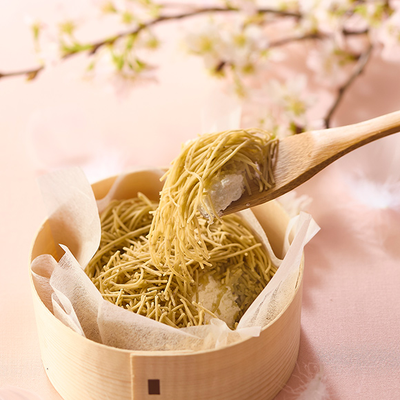 上品でなめらかな口当たりに仕上げた、春限定の栗きんとんです。種子島産の自社製黒糖でコクと深みを加えた特別な栗きんとん餡を、自然薯入りの練り切りで優しく包みました。恵那山を望む雪解けの春景色に、桜のジュレで香りと華やかさを添えた逸品です。販売価格 2,916円 -
