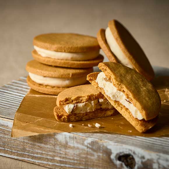 バターと卵黄を贅沢に使い、さっくりと焼き上げたロングセラー栗サブレ「山ノ栞」。ココア&チョコチップを加えた限定フレーバーを、贈り物にもぴったりな特別パッケージに詰め合わせました。
